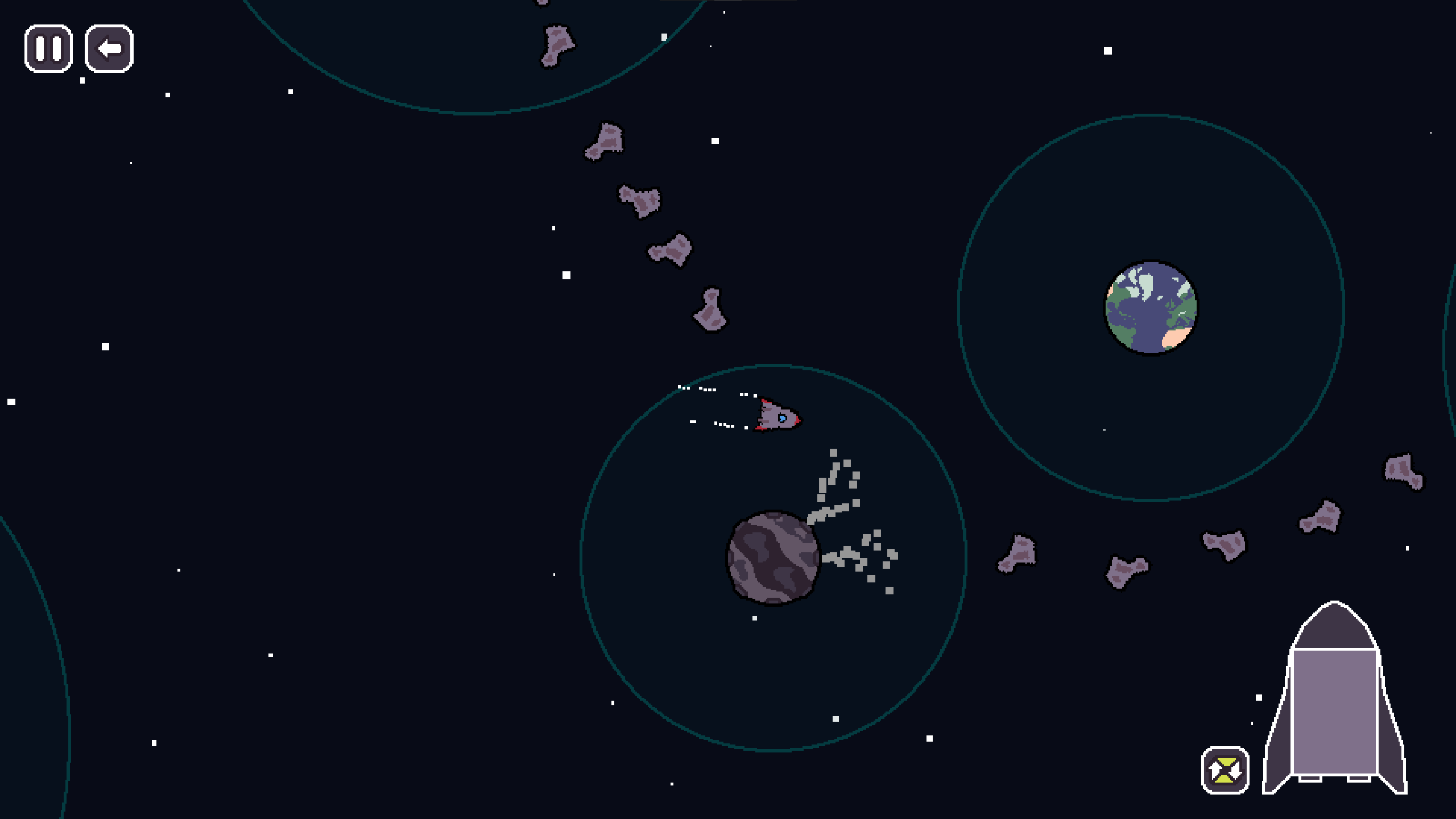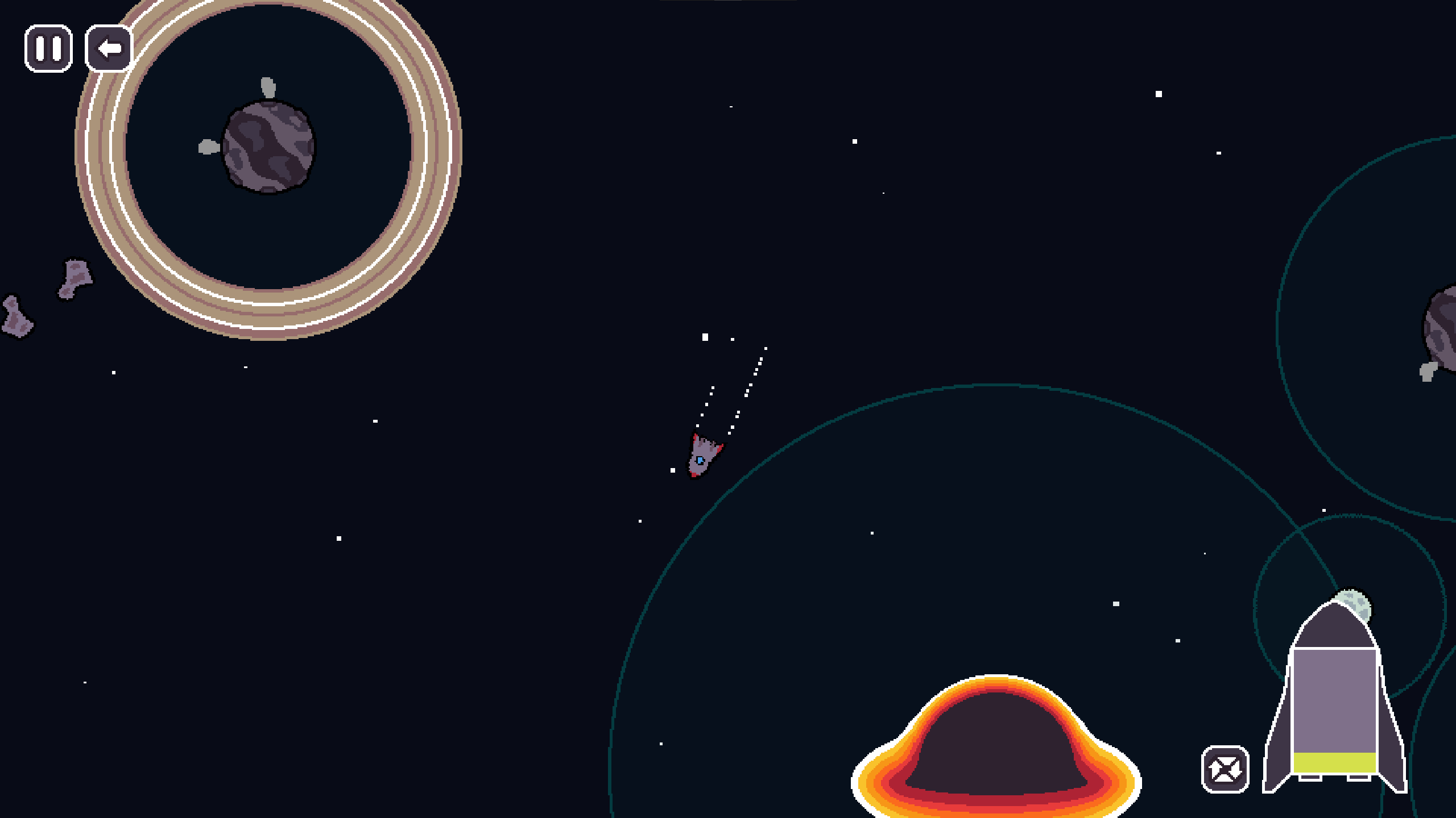 Love the pixel art and the concept. Once I got the hang of it, it was satifying to get the right angle to loop where I wanted to go. I think the steering is way too slow. It's so hard to change direction once you start moving. Great submission!